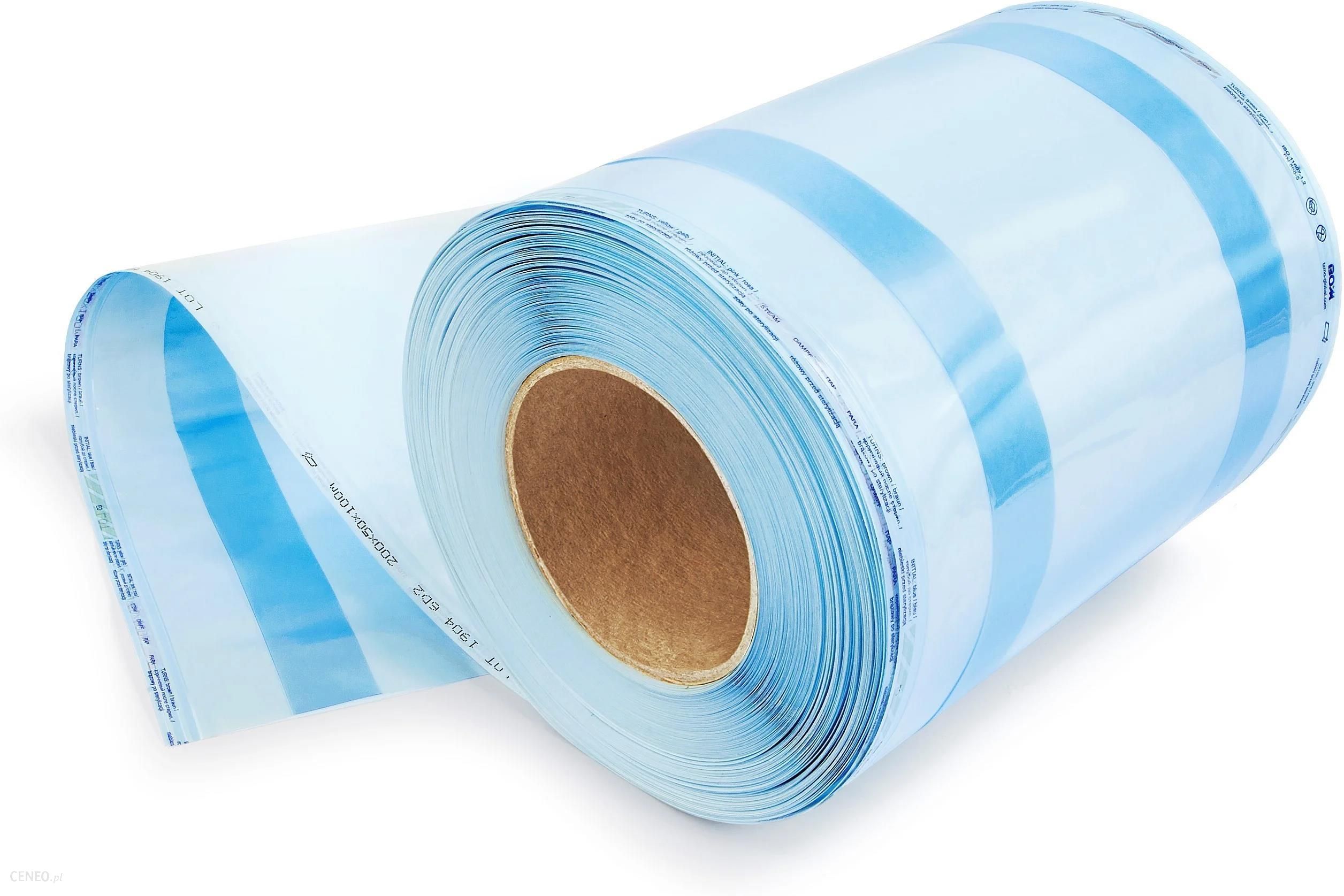 Wzmocniony rękaw papierowo-foliowy do sterylizacji, z fałdąRękawy tego typu stosowane są do sterylizacji parą wodną, tlenkiem etylenu i formaldehydem. Rękawy posiadają chemiczne wskaźniki sterylizacji, które zostały nadrukowane na papierze w obrębie zgrzewu poza polem załadunku. Fałda pozwala na zastosowanie opakowań do przedmiotów o większych wymiarach.Cechy produktu:skład produktu to laminat foliowy o wysokiej wytrzymałości na rozerwanie oraz biały papier medyczny o dużej wytrzymałości na wilgoć,przezroczysta laminowana folia pozwala na łatwą identyfikację zawartości,szeroki wybór rozmiarów umożliwia łatwy dobór odpowiedniego opakowania,możliwość aseptycznego (bezpyłowego) otwarcia opakowania.Okres ważności: 5 lat od daty produkcji podanej na opakowaniu.W opakowaniach zastosowano wskaźniki chemiczne:sterylizacja nasyconą PARĄ WODNĄ w nadciśnieniu (PARA) – w postaci różowego prostokąta, który po procesie sterylizacji tą metodą zmienia barwę na brozową,sterylizacja TLENKIEM ETYLENU (EO) – w postaci zielonkawoniebieskiego prostokąta, który po sterylizacji gazowej zmienia barwę na żółtą,sterylizacja FORMALDEHYDEM (FORM) – w postaci różowego prostokąta, który po sterylizacji zmienia barwę na zieloną.