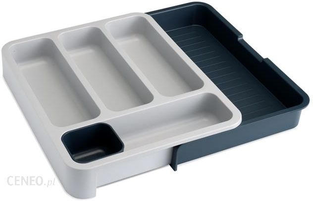 Pojemnik na sztućce i przybory kuchenne marki Joseph Joseph. Produkt składa się z dwóch części, dzięki czemu pasuje do szuflad o szerokości od 28,3 do 48 cm. Gdy organizer zostanie dopasowany do szuflady, można go spiąć na stałe. Pierwsza część posiada przegrody na sztućce (łyżki, noże, widelce, łyżeczki oraz mały pojemniczek na drobne elementy, np. końcówki dekoratorów). Druga część idealnie sprawdzi się do przechowywania przyborów kuchennych. Organizer posiada antypoślizgowe nóżki, dzięki czemu nie ślizga się podczas otwierania i zamykania szuflady. Pojemnik wygląda bardzo stylowo i pozwala oszczędzić miejsce. Dodatkowo sztućce są zabezpieczone przed zarysowaniem oraz przed skaleczeniem się podczas wyjmowania.Marka Joseph Joseph to produkty funkcjonalne, wygodne, niezwykle stylowe i przydatne w każdym domu. Produkty pozwalają nie tylko uporządkować miejsca, które do tej pory pozostawały w nieładzie. Dostarczą również wiele radości z korzystania z artykułów gospodarstwa domowego.Produkt otrzymał Srebrną nagrodę w konkursie House Beautiful Awards 2013.Cechy produktu:- wykonany z wysokiej jakości, utwardzonego tworzywa,- przeznaczony do przechowywania sztućców i przyborów kuchennych,- podzielony jest na dwie części,- dzięki regulacji, można go dopasować do każdej szuflady,- po dobraniu odpowiedniej szerokości, można go spiąć na stałe,- wyposażony w pojemniczek na drobne elementy,- zapobiega bałaganowi w kuchni,- jest bardzo trwały i będzie służył długie lata,- przydatny w każdej kuchni.Wymiary produktu:złożony:- długość 36.5 cm,- szerokość 28.3 cm,- wysokość 5.5 cm.rozłożony:- długość 36.5 cm,- szerokość 48 cm,- wysokość 5.5 cm.
