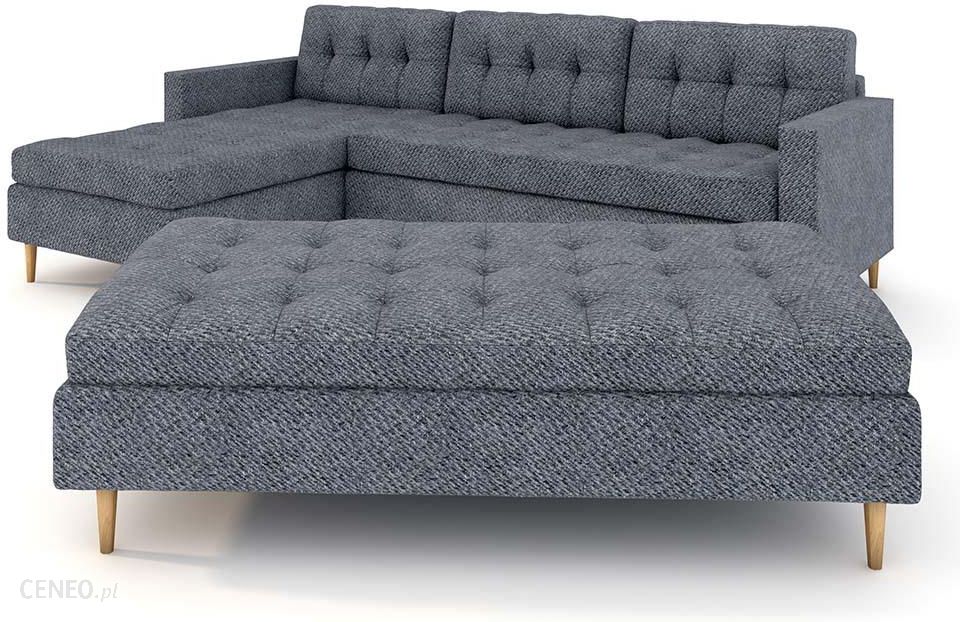 Kopenhaga jest narożnikiem idealnym do wnętrz w stylu skandynawskim. Niepowtarzalny urok tej minimalistycznej formie nadaje pikowanie połączone z prostymi, geometrycznymi przeszyciami na siedziskach i poduchach oparciowych. Jasne drewniane nogi uwydatniają styl narożnika. Nie tylko wyrazistym, ale i funkcjonalnym dodatkiem do narożnika jest duża pufa. Dosuwając ją do narożnika zyskujemy dodatkową powierzchnię siedziska. Inną możliwością jest podczepienie pufy do frontu mebla, za pomocą specjalnego mechanizmu (tzw. krokodylków) tak powstaje duża i komfortowa powierzchnia spania. Co więcej – pufa posiada przestronny schowek, który sprawdzi się jako pojemnik na pościel. Narożnik został wykonany w tkaninie Arte 77A. Materiał ten to dwukolorowa plecionka. Wysoce niepodatna na ścieranie oraz rozdarcia, nawet na szwach. Technologia Łatwoczyszcząca utrudnia zabrudzeniom wnikanie do środka, pozwalając łatwo utrzymać materiał w czystości. Arte jest Przyjazna środowisku. Ogromna