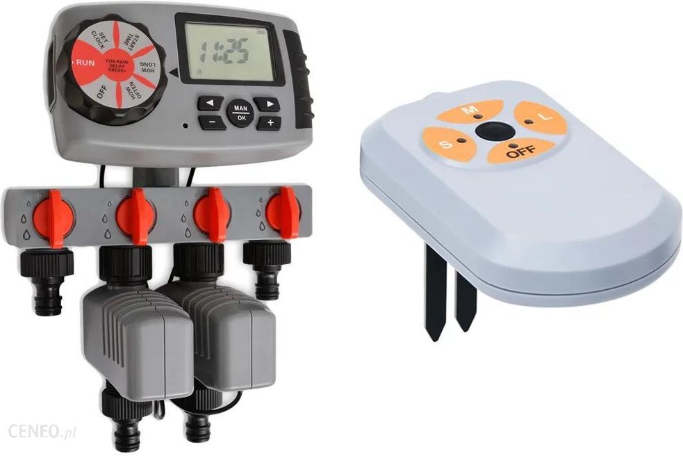 Ten automatyczny sterownik nawadniania pozwala na podlanie ogrodu w kontrolowany, zorganizowany sposób, nawet jeśli jesteś nieobecny. Idealnie nadaje się na czas letni, gdy rośliny i trawniki wymagają częstego podlewania. Ten automatyczny system nawadniania został zaprojektowany z myślą o oszczędzaniu wody i czasu. Zawiera 4-drożny dystrybutor wody, który można podłączyć do różnych urządzeń nawadniających. Elektroniczny sterownik ma pokrętło i przyciski do programowania i pozwala wybrać aktualny czas, czas rozpoczęcia nawadniania, częstotliwość nawadniania i czas trwania nawadniania dla każdego połączenia. Wykonany z ABS, ten sterownik nawadniania jest wodoodporny i odporny na korozję, a zatem bardzo trwały. Czujnik wilgotności gleby jest wyposażony w kabel o długości 5 metrów, który łączy się z zegarem nawadniania lub sterownikiem i wysyła informacje o poziomie wilgotności. Zaostrzone panele można wbić w ziemię. Gdy wykryją, że gleba jest wystarczająco mokra, program, który był pierwotnie ustawiony do nawadniania, zostanie pominięty, aby zapobiec nadmiernemu podlewaniu i zaoszczędzić wodę. Wystarczy ustawić pokrętło na jeden z trzech poziomów, aby dostosować się do szczególnych wymagań roślin w zakresie wilgotności.