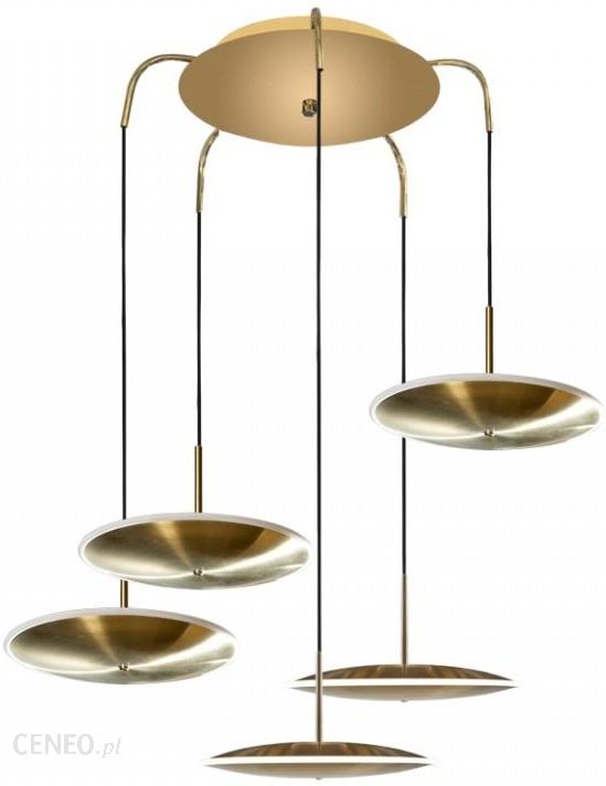 Lampę tworzy pięć poziomych talerzy w formie płaskiego bębna o średnicy 20cm.Każdy owinięty jest światłem ledowym.Przewód każdego z talerzy jest regulowany max do 170 cm i dodatkowo imituje sznurek (nie zwykły kabel jak stosuje się w większości lamp).Takie rozwiązanie daje niepowtarzalny efekt i jednocześnie staje się kolejnym atutem lampy.Materiał: stal nierdzewnaKolor: stare złotoMoc: 45 WRodzaj: LED 2835Wymiary opakowania: 78,5×78,5×19 cmWaga brutto: 12,5 kg